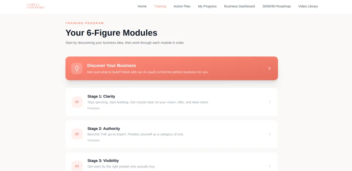 By the end of Stage 1, you'll finally stop second-guessing everything and start building with confidence.
