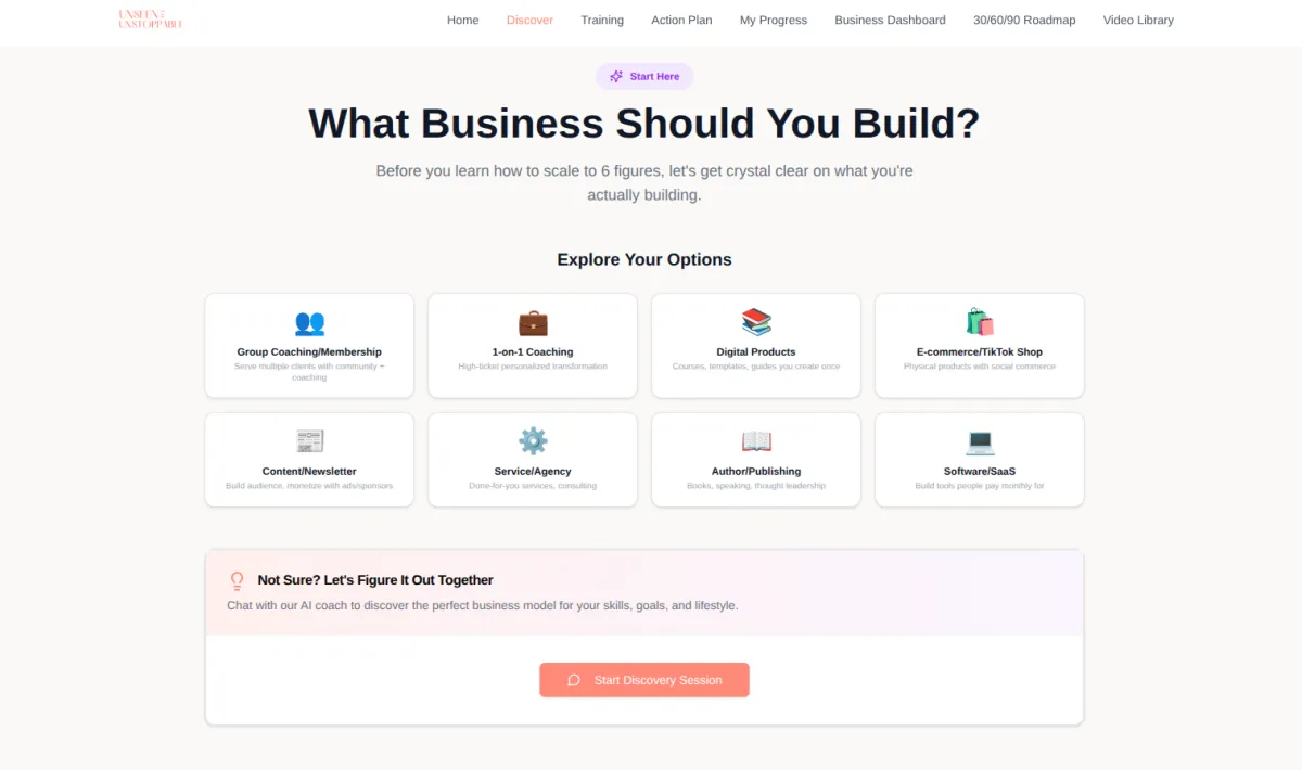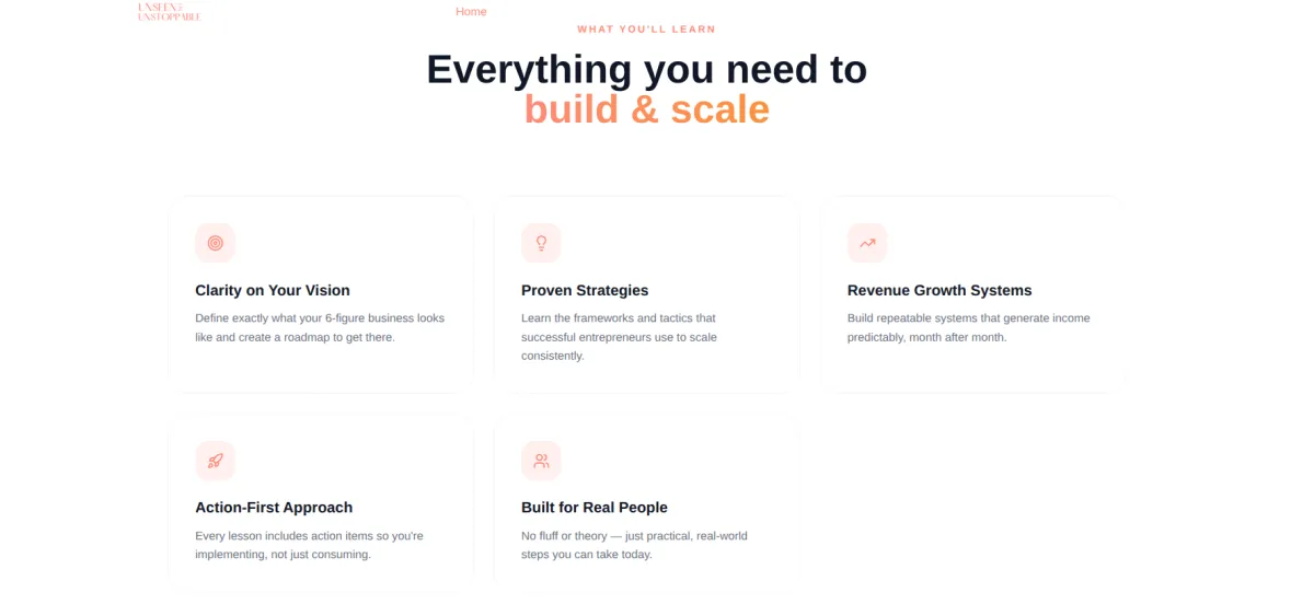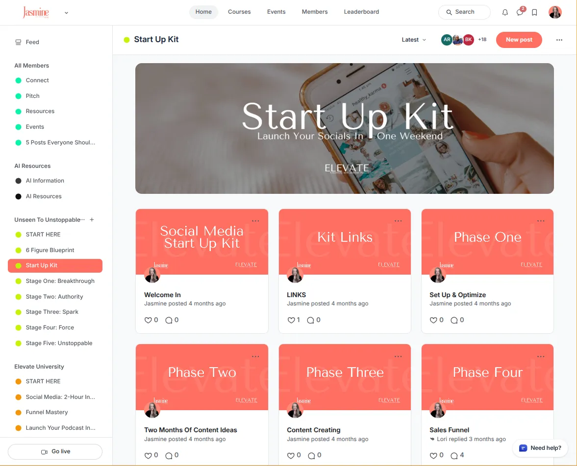 Best for: Entrepreneurs who want personalized support, regular accountability, and direct access to Jasmine.