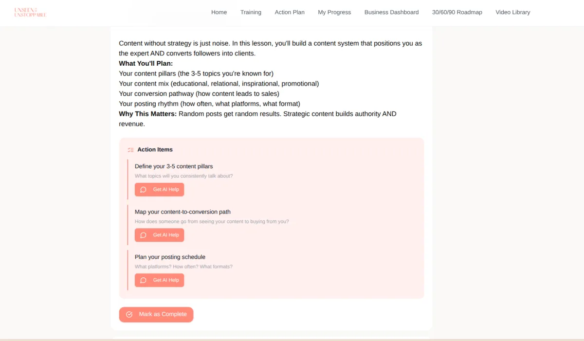 ✓ Your conversion content system (posts that don't just get likes - they get sales)